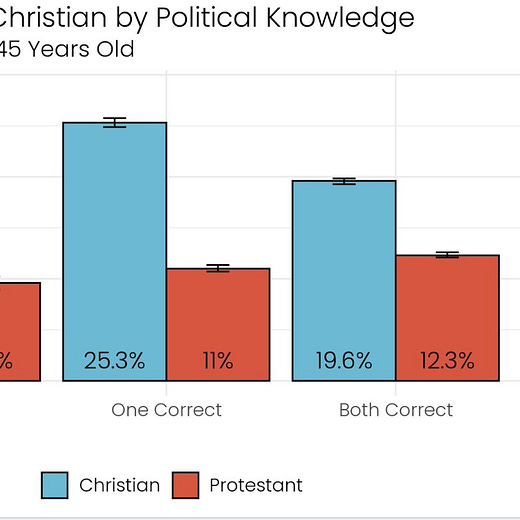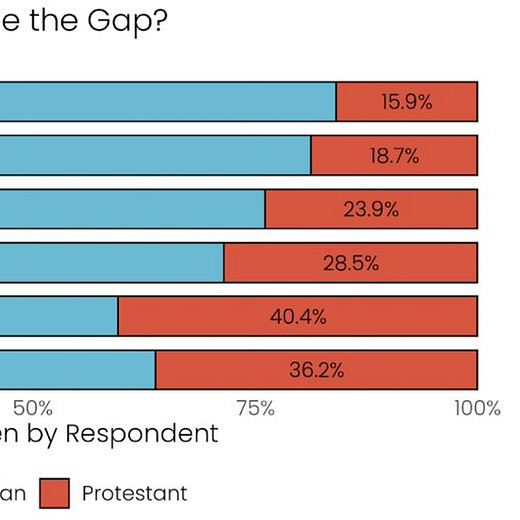 The other big survey that everyone has been talking about is about the possible revival of the Protestant mainline. Over the past 2-3 years, the percentage of White Americans who identify as evangelical Christian has continued to shrink—but, in a reversal of previous trends, the ranks of the unaffiliated have dropped while the percentage who identify as non-evangelical Christians has risen—in both cases quite sharply. There are a lot of questions to ask about the data—whether the change reflects any shift in denominational affiliation, for example, or whether it’s just a shift in nomenclature by people who rarely attend church or are unaware of denominational lines in the first place. When increasing proportions of American Christians don’t seem to know what a Protestant is, it’s hard to know what the results of this kind of survey mean. But it’s certainly worth watching.
